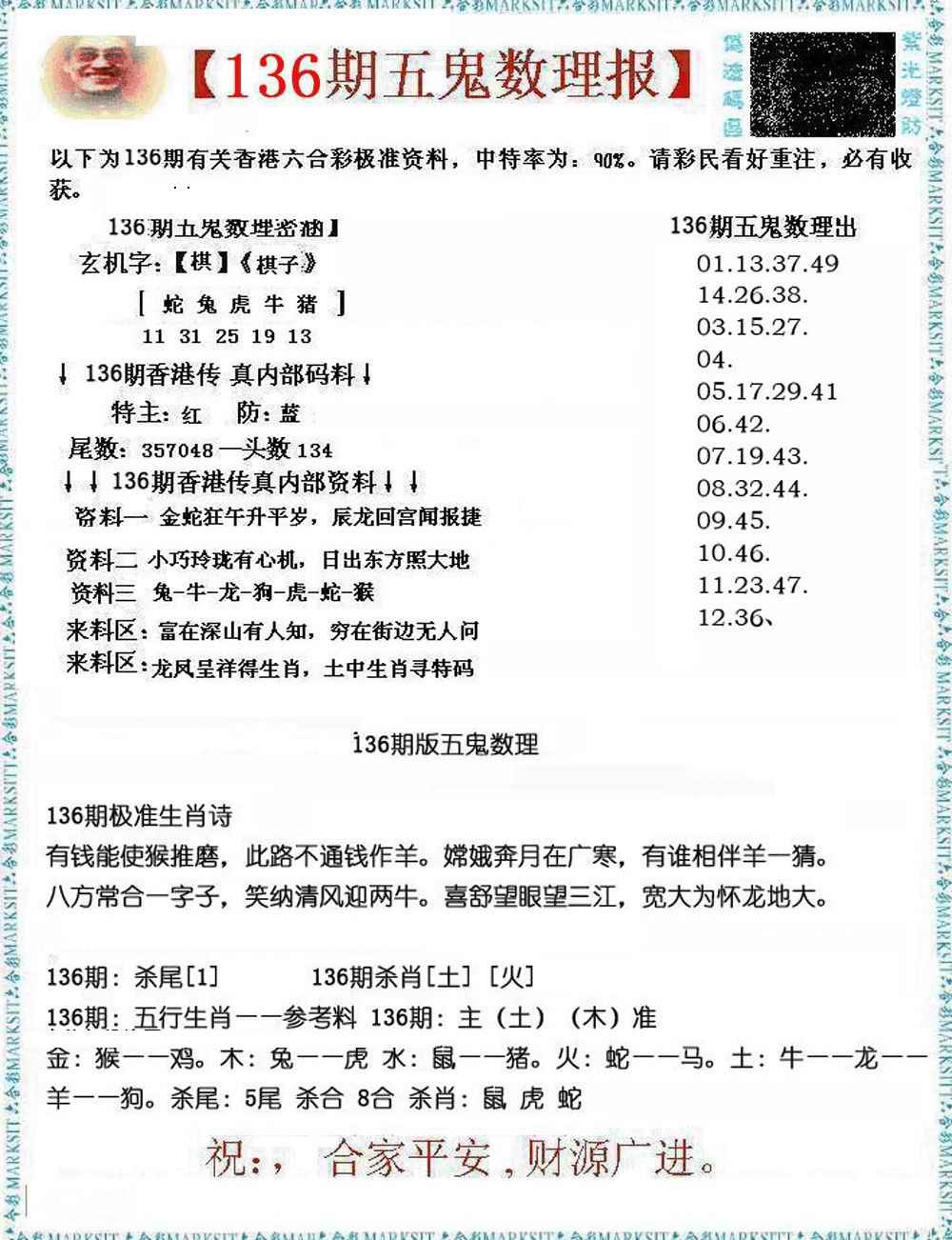 > 136期五鬼数理报[图]