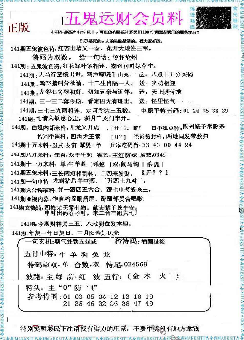 > 141期五鬼运财会员料[图]